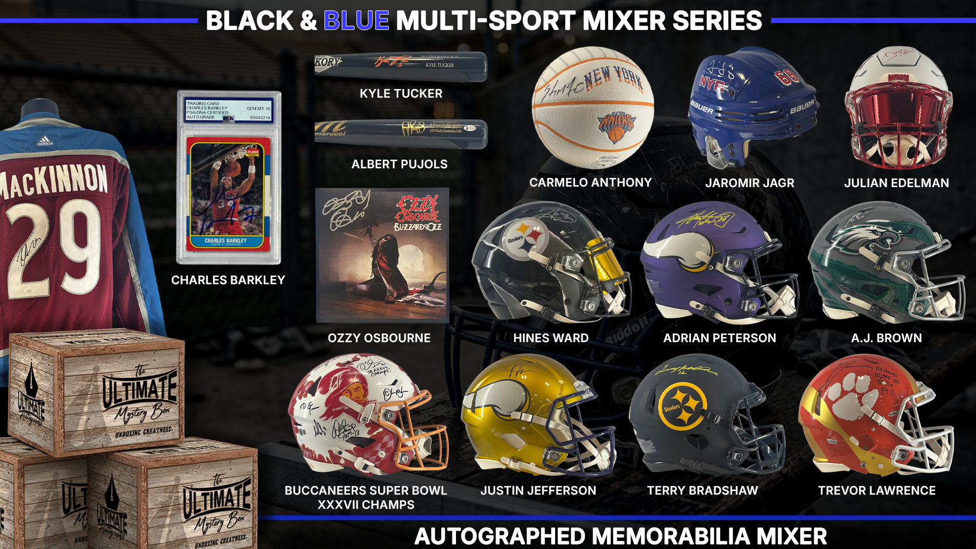 A Ultimate Autographs Mystery Box contains an authentic autographed memorabilia item for sports fans and collectors who are passionate about owning genuine memorabilia. The concept of the Box is to allow collectors the chance to win autographed items at a fraction of the actual cost.