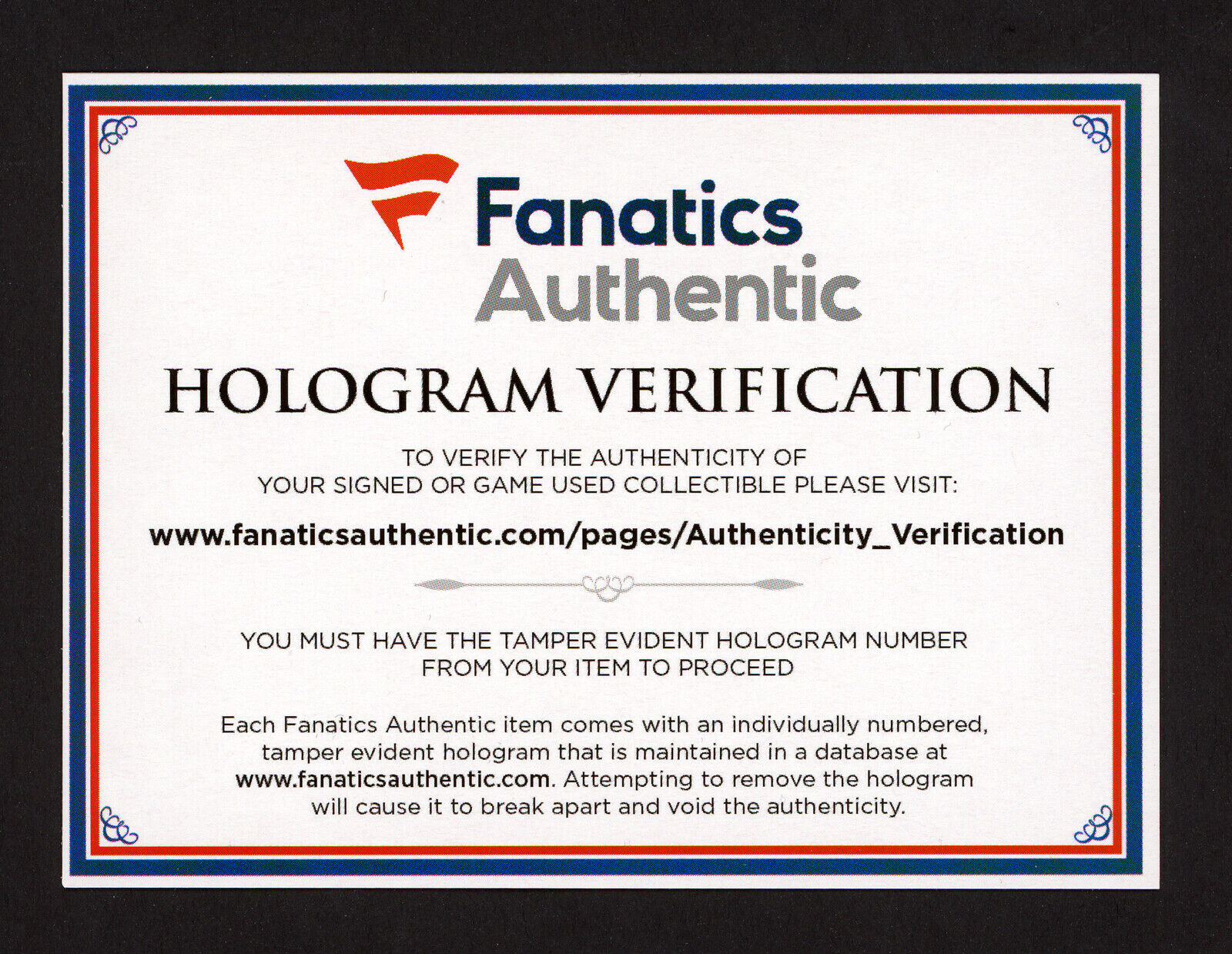 Each and every item we sell comes with an iron clad COA from one of the leading authenticators such as PSA, JSA, Beckett or Fanatics. (Find out and mention which has QR codes and which has a physical card to set the expectation of past and future authentication checks.)