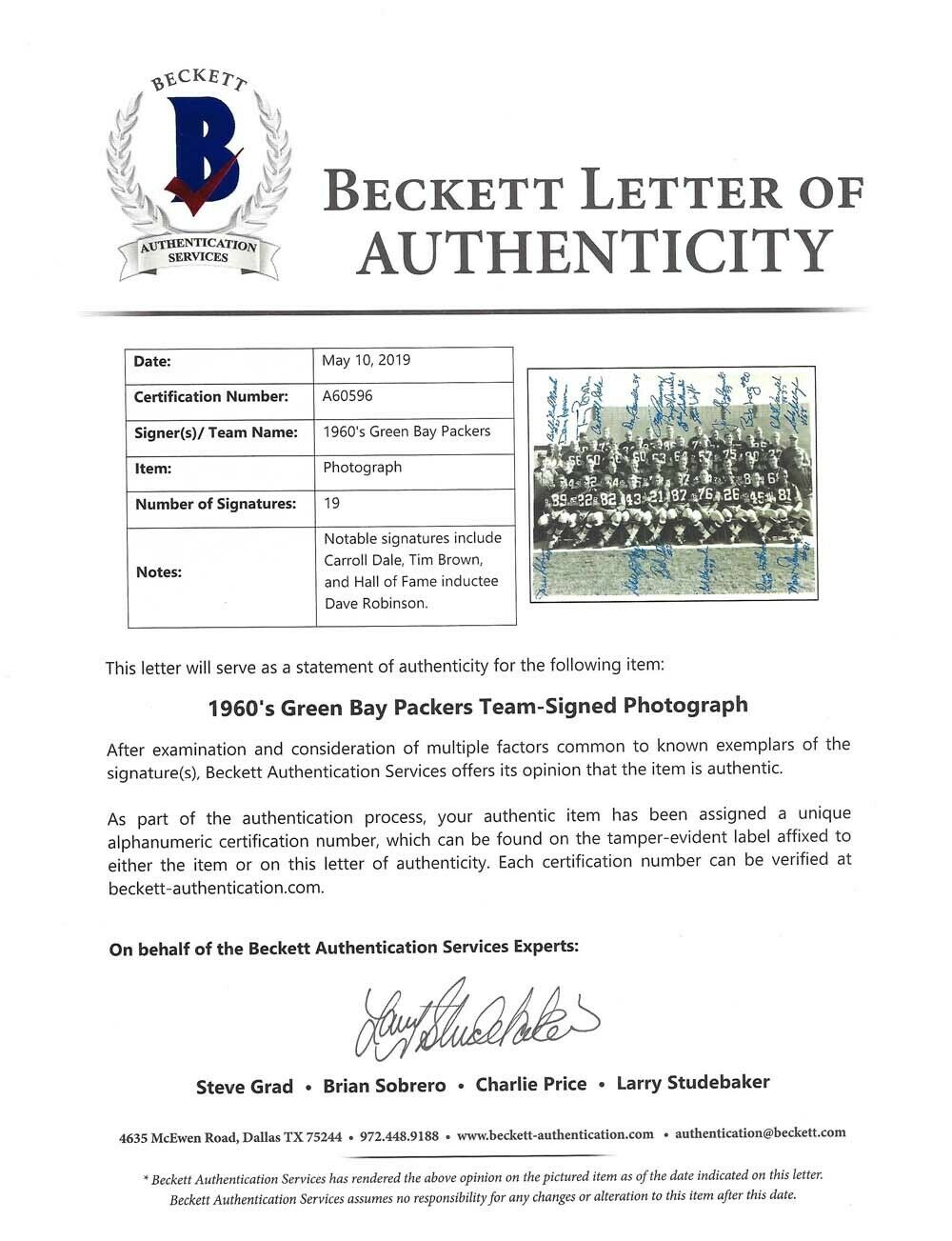 • Robinson Dale Green Bay Packers 1966 Packers Autographed Signed 8x10 Photo with BAS COA