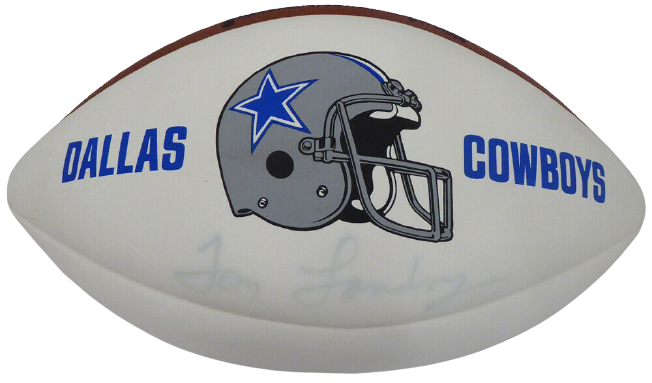 • Tom Landry has hand signed this football, which is in excellent condition.